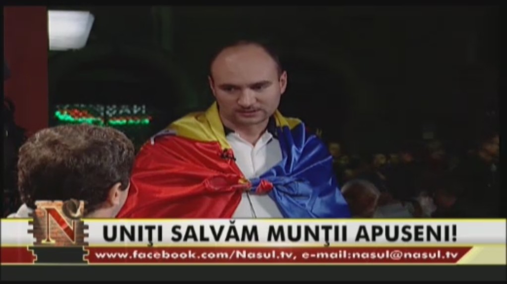 Marsul organizat in Capitala impotriva proiectului minier de la Rosia Montana a trecut, in direct, prin fata studiourilor Nasul Tv. Oamenii s-au oprit pentru cateva momente, au salutat invitatii de la Nasul Tv si au scandat in fata sediului televiziunii. Mai mult, unul dintre manifestanti a fost invitat in emisiunea moderata de Grigore Cartianu, unde pret de cateva minute a vorbit despre motivele pentru care el si alti mii de romani ies in strada de mai bine de o luna de zile.
