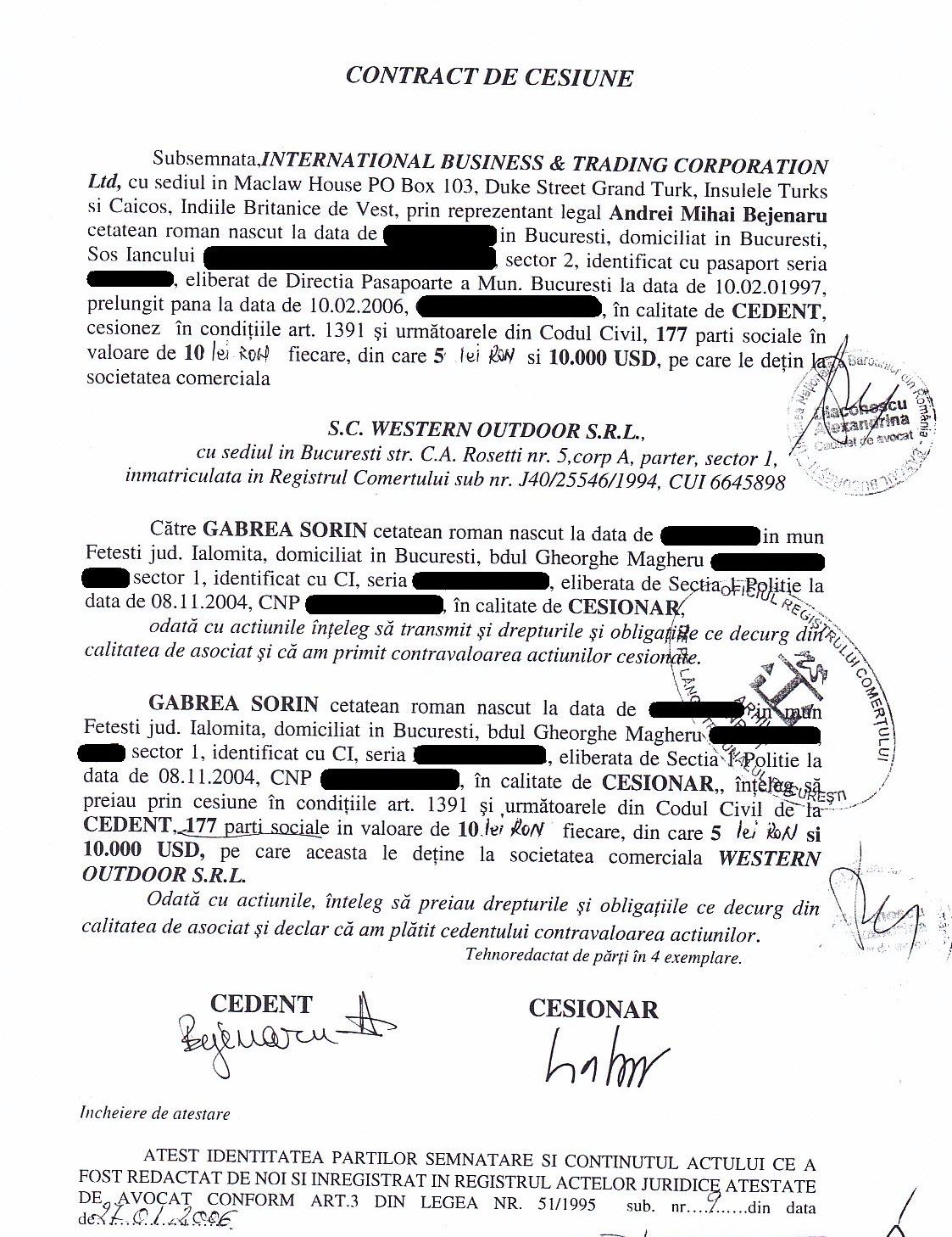 cumparata de catre Sorin Gabrea de la Popoviciu, in 2006. Mai exact, de la Ligia Popoviciu, mama acestuia, persoana pe care fiul o foloseste ca interpus in numeroase afaceri, si de la o societate offshore, inregistrata in Caraibi, prin care Popoviciu controleaza multe dintre afacerile sale: International Business & Trading Corporation Ltd.