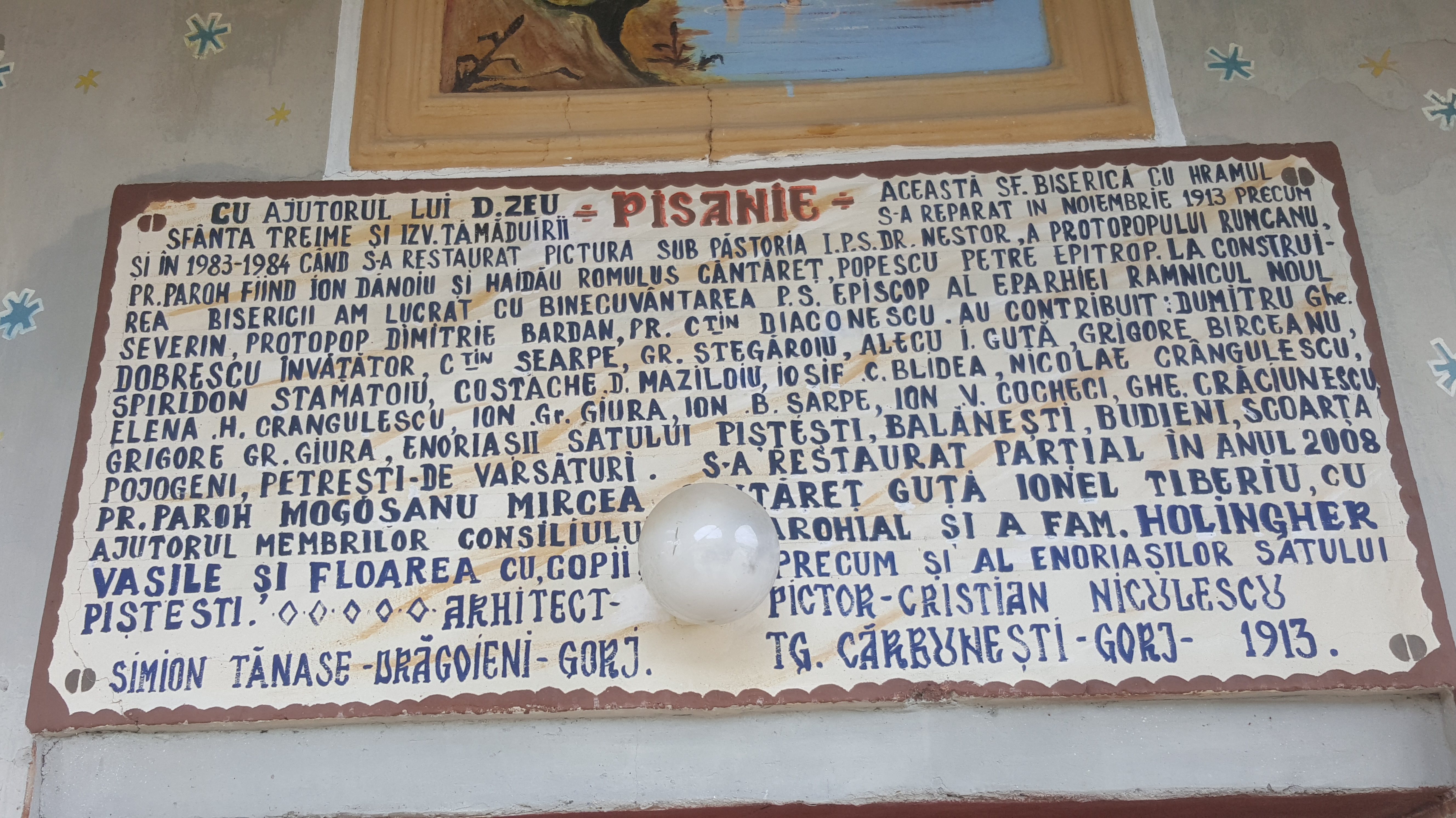 Ca să fie o asemenea frumușeață în cimitire și pentru ca bisericile să nu se mai zărească dinapoia blocurilor – cavou, în Gorj s-au înființat mai multe protoierii. Cimitirul și biserica din Pișteștii din Deal aparțin de Protoieria Târgu Jiu Sud, condusă de Protopopul Ionuț Câmpeanu. Un băiat de băiat, despre care presa locală relatează că e mare amator de chiolhanuri și că a fost cercetat pentru braconaj și nerespectarea regimului armelor și munițiilor. ”Sfinția Sa” ne-a spus că merge des la cimitirul respectiv, dar n-a sesizat vreo problemă, și ne-a cerut răgaz să-l contacteze pe ”trimisul Domnului” din zonă.