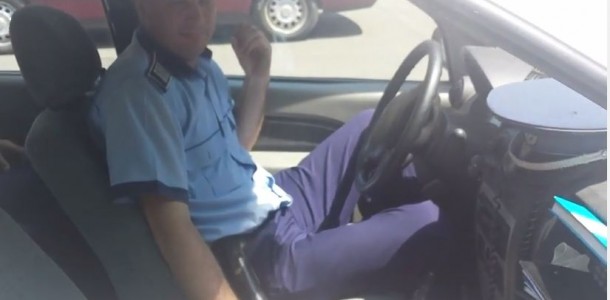 Un politist care isi oprise masina de serviciu intr-un loc interzis parcarii a fost prins cu minciuna de catre un cetatean vigilent.