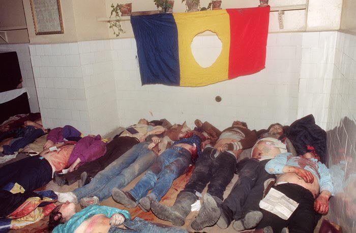 Fotografia, în care apar câteva victime ale represiunii din ’89, aparține agenției France Presse și poate fi descărcată (contracost) din arhiva Getty Images. Eu am preluat-o de pe Epoch Times, dintr-un articol referitor la povestea cadavrelor dispărute de la morga spitalului din Timișoara.