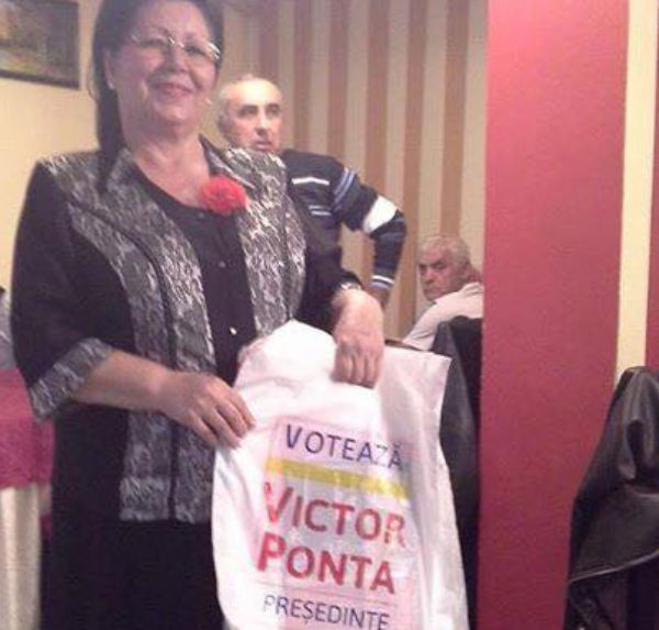 Peste 200 de pensionari au fost miercuri invitaţi la o masă electorală de către organizaţia PSD de la Mioveni, Argeş. Mititei, bere, sucuri şi mici pungi cu cadouri au fost împărţite în sala restaurantului Dacia care aparţine Consiliului Municipal Mioveni. Cu această ocazie au fost împărțite și mici atenții, în plase inscripționate cu „Votează Victor Ponta Președinte!”.