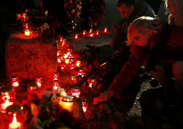 Zeci de oameni au depus flori duminica in fata salii de concerte de la Moscova, unde Corul Armatei Rosii isi tinea repetitiile.