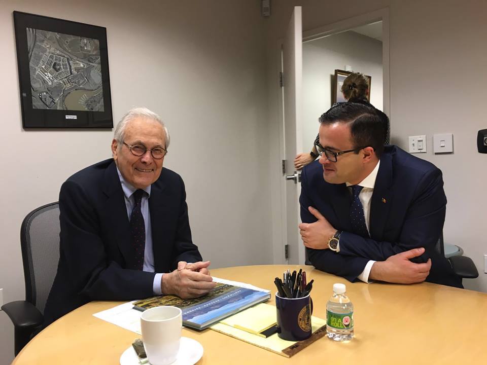 Îmi mobilizez toate resursele și tot nu mai înțeleg ce se întâmplă ! Rumsfeld are 84 de ani, s-a retras din 2006…, a comentat pe fb preluând postarea FLUX 24 fostul ministru de externe, Teodor Baconschi