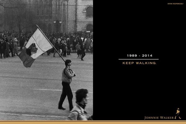 Prietenii știu că nu sunt un mare fan al corectitudinii politice extreme, dar ideea asocierii imaginilor Revoluției din 1989 cu reclama la whisky-ul Johnnie Walker îmi pare a fi o grosolănie. Ceva în genul băncuțelor și coșurilor de gunoi tricolore care împânziseră Clujul în timpul administrației Funar. Mai lipsește (sper să nu le dau idei) să vedem imaginile revoltei populare din 89 asociate cu cianura medicament promisă pentru Roșia Montană.