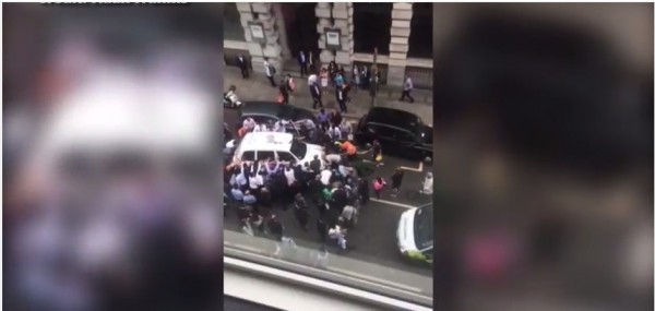 In scenele dramatice surprinse intr-o inregistrare video se poate observa cum aproximativ 30 de trecatori ridica taxiul, versiunea alba a traditionalului taxi negru londonez, pentru a elibera femeia. Piciorul si pelvisul acesteia fusesera prinse sub o roata, scrie The Guardian.