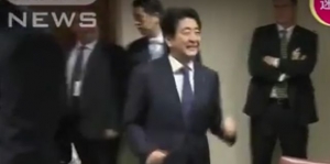Sputnik International scrie totuși că motivul gestului premierului japonez a fost faptul că ar fi întârziat la o întâlnire.