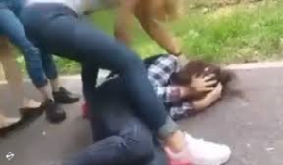 Victima, pe numei ei Rebecca, a fost luată la palme de o altă fată. Apoi, a intervit o adolescentă pe care cei prezenți, inclusiv victima, o numesc Flavia. Acesta a lovit-o pe Rebecca cu un picior în cap, apoi a tras-o de păr și a pus-o la pământ. Alte două fete au intervenit și au lovitu-o cu pumnii și cu picioarele, fără ca victima să reacționeze.