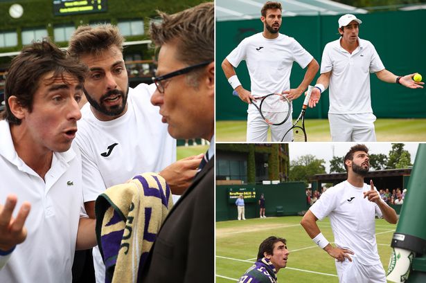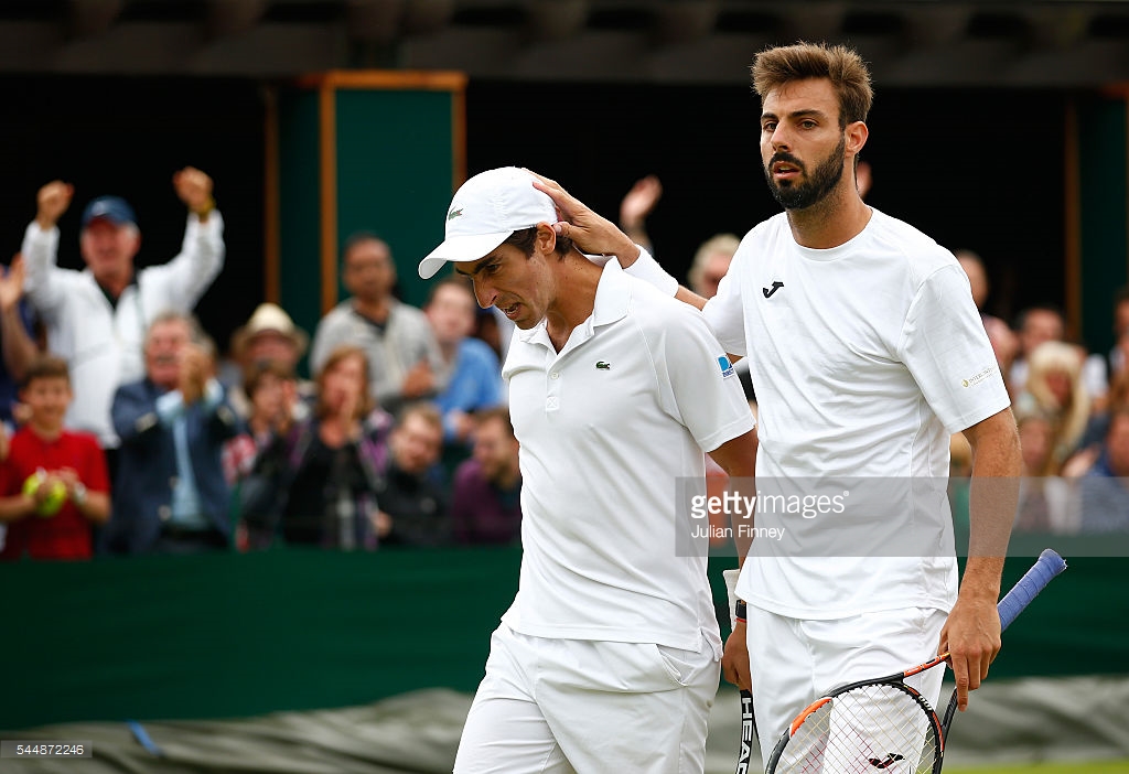 Uruguayanul Pablo Cuevas (30 de ani) și spaniolul Marcel Granollers (30 de ani) s-au dat în spectacol, ieri, în timpul și la finalul meciului cu perechea Johathan Murray (Marea Britanie) / Adil Shamasdin (Canada), din optimile de finală ale turneului de la Wimbledon, scrie libertatea.ro