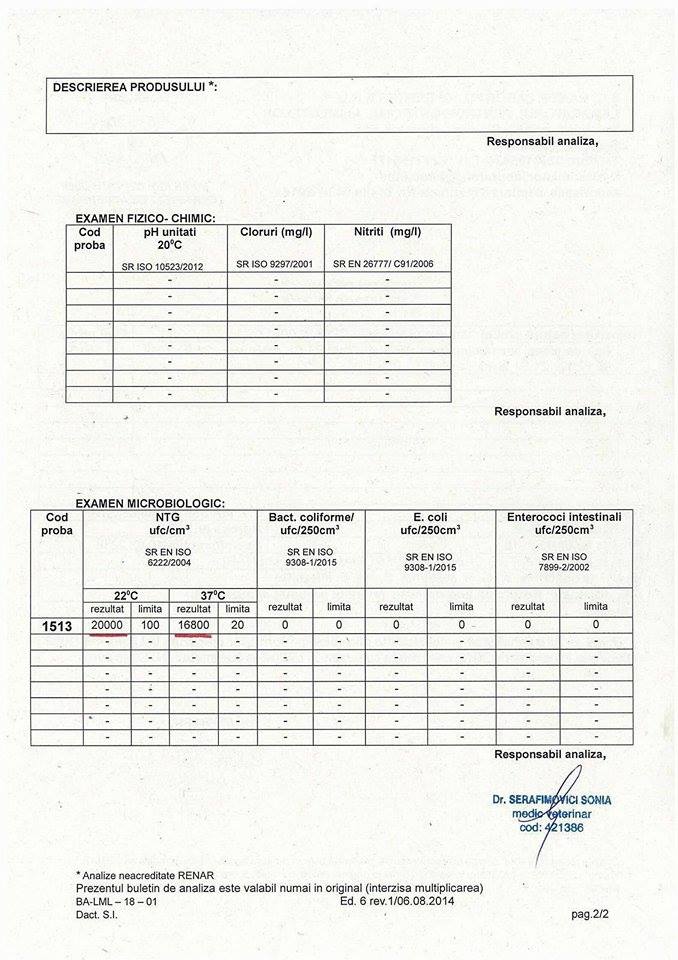 Am văzut mai multe buletine de analize. În unele apar bacteria escherichia coli și bacterii coliforme. Dau exemplul unui buletin de analize care relevă faptul că, deși limita de germeni este 100, apa conține 20.000, la temperatura de 22 grade Celsius.