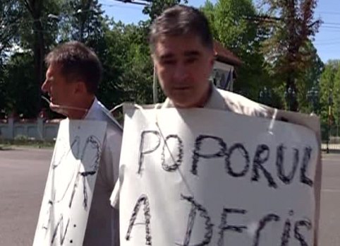 Pentru ca peisajul să fie complet, acesta a apărut ieri în fața Cotrocenilor într-o acțiune de a mobiliza lumea să scandeze în fața administrației prezidențiale, acolo unde a revenit Traian Băsescu. Purtând o pancartă pe care scria „Poporul a decis, Băsescu e demis”, Ghișe a defilat ieri spre deliciu televiziunilor care l-au tot filmat din toate unghiurile în această ipostază penibilă care aducea mai mult cu un „homeless” cerșetor din filme de la Hollywood. El a ţinut să sublinieze că nu este un protest, ci că împreună cu un prieten a convenit ca în fiecare zi să se plimbe în jurul Palatului Cotroceni.