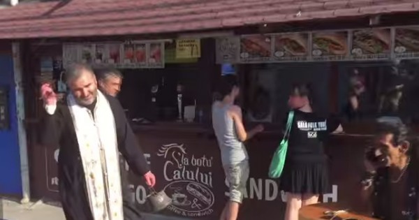 Imagini inedite pe litoral. Un preot a fost filmat în timp ce sfinţea magazinele, cârciumile şi shaormăriile din Vama Veche, relatează b1.ro