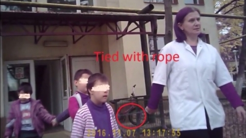 Un profesor care preda la scoala speciala spune ca poza in care cei mici sunt legati nu arata o masura umilitoare, ci o tehnica de invatare. „Este ca sa spun asa un sistem didactic. Deci folosim rareori, cand sunt copii la inceput sa invete sa mearga doi cate doi. Ei nu sunt legati, ci se prind de aici cu manutele”, a declarat Lumanare Mihaela, profesor de terapii special.