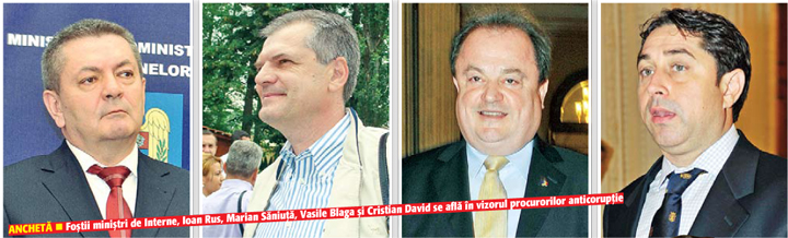 In momentul de fata, numele a patru fosti ministri de Interne apar in aceasta ancheta, fiecare dintre ei situandu-se insa pe pozitii diferite. Astfel, negocierile purtate in forta la inceputul anului si in cadrul carora lui Claudiu Florica i-a revenit rolul de „redistribuitor” al spagilor de milioane de euro s-au desfasurat pe timpul mandatului lui Ioan Rus. Numai ca acesta a parasit sefia MAI cu doar vreo doua luni inainte de semnarea contractului si ramane acum de vazut daca a taiat-o la timp sau nu din fruntea Internelor. Oricum, comisia desemnata din cadrul MAI a finalizat negocierile initiate pe mandatul lui Rus pe vremea lui Marian Saniuta, cel care i-a preluat a preluat mandatul in iunie 2004. Si care poate iesi mai mult decat sifonat din aceasta ancheta redeschisa in forta in urma cu putina vreme.