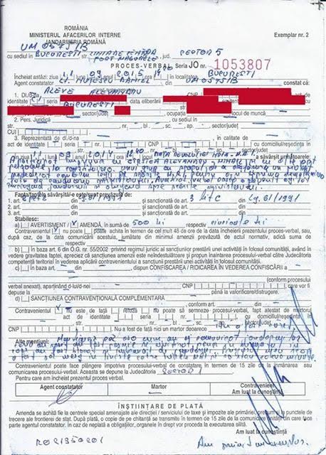 Cei doi protestatari reținuți de jandarmi și condusi cu duba la secția de Poliție, Alexandru Alexe şi Alex Cârstea, au fost amendați cu câte 500 RON (foto) pentru că ar fi încălcat prevederile articolului 2, punctul 2, din Legea 61/1991. Acesta prevede că „constituie contravenţie săvârşirea oricăreia dintre următoarele fapte, dacă nu sunt comise în astfel de condiţii încât, potrivit legii penale, să fie considerate infracţiuni: (…) constituirea unui grup format din trei sau mai multe persoane, în scopul de a săvârşi acţiuni ilicite, contrare ordinii şi liniştii publice şi normelor de convieţuire socială, precum şi actele de încurajare sau sprijinire, sub orice formă, a unor astfel de grupuri de persoane, care incită la dezordine socială;”