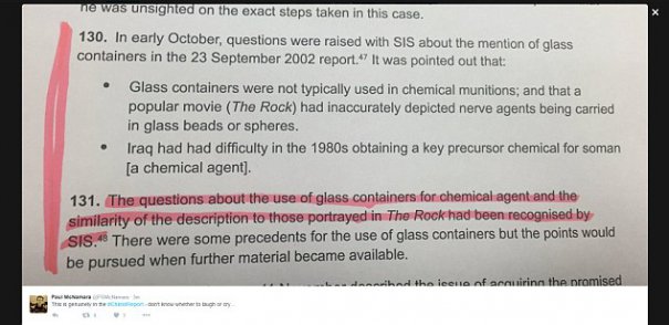 Raportul Chilcot, privind intervenția Marii Britanii în Irak, în 2003, dezvăluie că serviciul de spionaj MI6 s-a bazat pe „informații” luate din celebrul „blockbuster” realizat în 1996, cu Sean Connery și Nicolas Cage în rolurile principale.