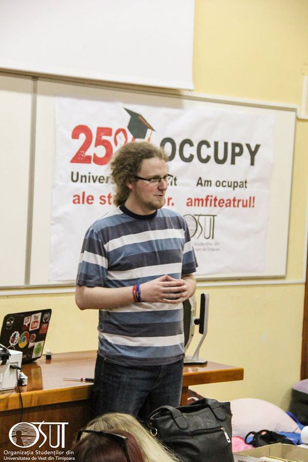„Este prima dată când se desfăşoară un astfel de protest. S-a început marţi seara, la ora 19.00. Am ocupat un amfiteatru din universitate şi nu îl vom părăsi până la sfârşitul săptămânii. Aseară (marţi seară – n.r.) au fost 70 de studenţi la început, au rămas aproximativ 20 peste noapte; şi-au adus pături, cafea, apă. Acum sunt tot cam aşa, pentru că sunt cursuri la care ei trebuie să ajungă”, a afirmat Ionuţ Dumitraşcu.