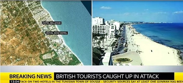 Orasul este aflat la malul Marii Mediterane si este popular in randul britanicilor. France 24 anunta ca ar fi vorba despre doua hoteluri la care ar fi avut loc atacul terorist.