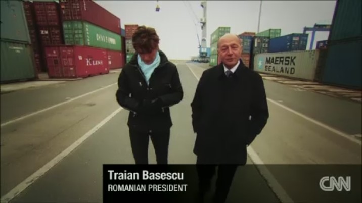 Presedintele Basescu, filmat in timp ce facea turul portului impreuna cu Becky Anderson, aminteste ca “Pana in decembrie 1989, Portul Constanta a fost folosit in principal pentru exportarea bunurilor produse de economia Romaniei si pentru a importa materii prime. In prezent Portul Constanta este mai mult sau mai putin un fel de poarta, in primul rand pentru Romania, conectand Romania cu restul lumii, si in acelasi timp este o poarta pentru Europa Centrala si de Est”.