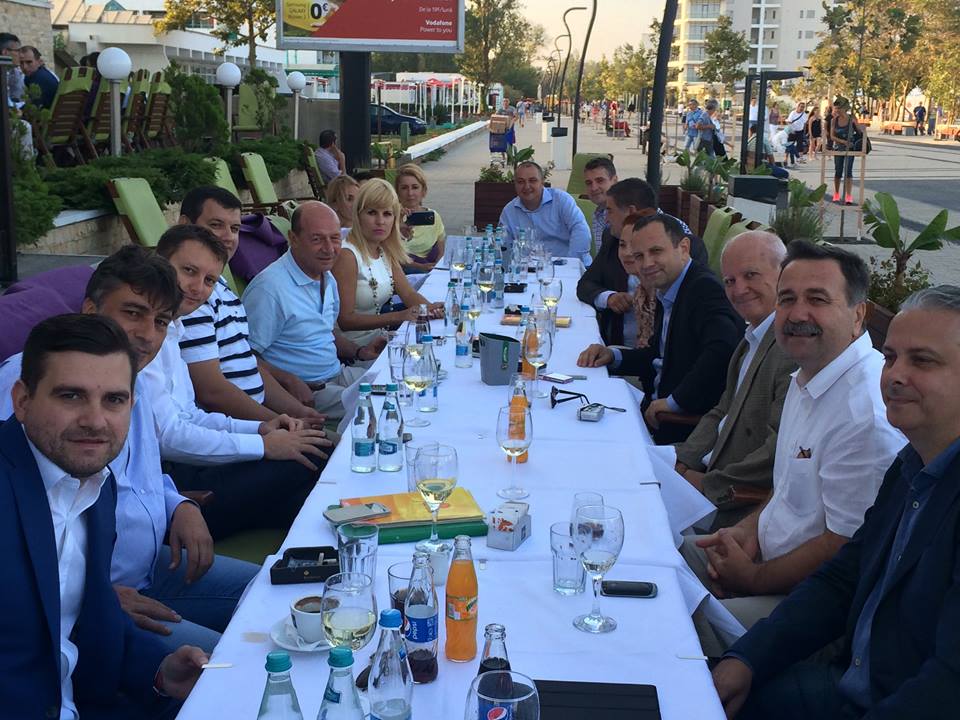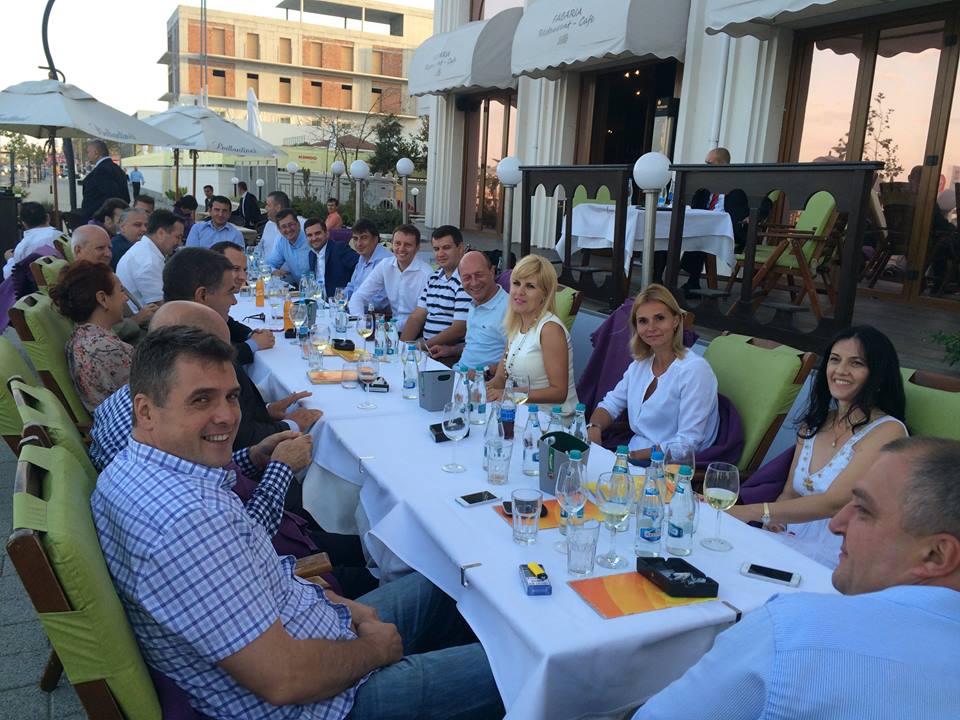 După şcoala de vară, Traian Băsescu şi liderii PMP au petrecut o oră la o terasă din Mamaia. Alături de Elena Udrea şi Eugen Tomac, şeful statului a băut un pahar de vin şi a discutat politică.