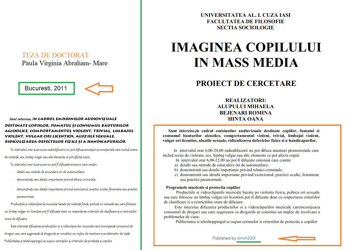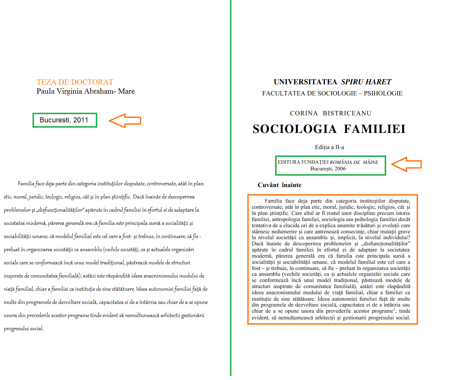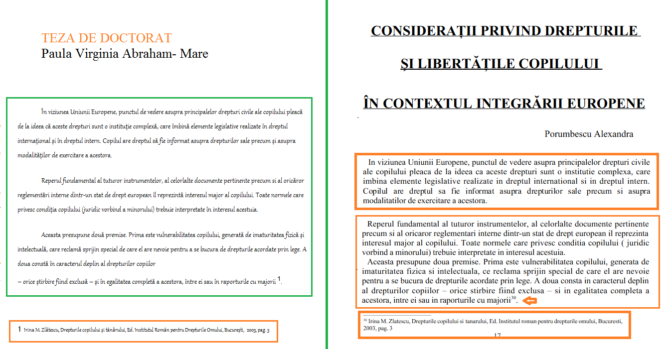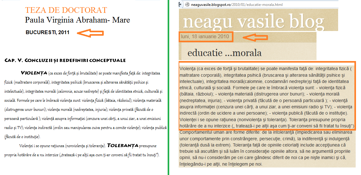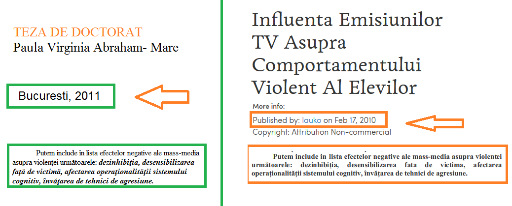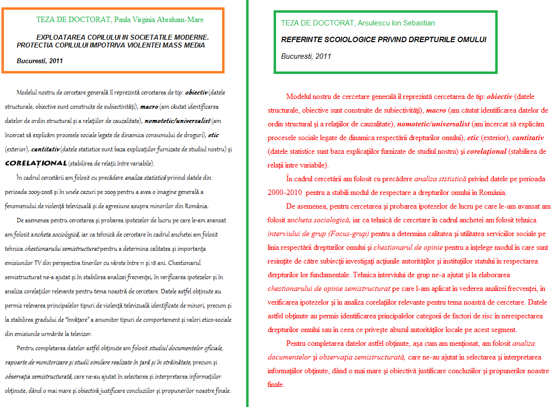 La urmatorul exemplu am o dilema: cine e autorul, doctorul Paula Virginia Abraham- Mare sau doctorul Ion Sebastian Arsulescu? Ambii au lucrarile sustinute in 2011 la Universitatea Bucuresti si la aceeasi scoala doctorala a Facultatii de Sociologie si Asistenta Sociala! Un lucru e clar: spiritele marilor doctoranzi se intilnesc! 🙂