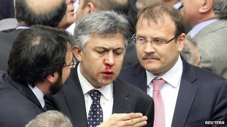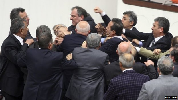 Parlamentul Turciei a aprobat o controversată lege prin care Guvernul îşi extinde autoritatea şi în privinţa numirii judecătorilor şi procurorilor, subordonând sistemul judiciar Ministerului Justiţiei. În timpul dezbaterii, membrii Parlamentului s-au luat la bătaie, unii dintre ei alegându-se cu nasul spart şi degete rupte. Membrii opoziţiei consideră că prin această lege Partidul Justiţiei şi Dezvoltării (cel aflat la putere) obţine control asupra sistemului juridic pentru a putea influenţa cazurile de corupţie.