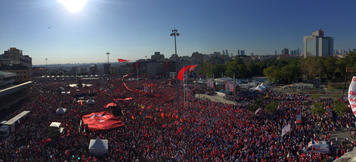 Intalnirea a avut loc la apelul Partidului Republican al Poporului (CHP, social-democrat si laic), fost partid de opozitie devenit aliat al partidului lui islamo-conservator al lui Recep Tayyip Erdogan (AKP). Partizanii AKP au iesit cu miile in fiecare seara pe strazi dupa puciul esuat petrecut in urma mai mult de o saptamana.