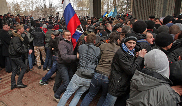 Protestatarii aruncă cu pietre și bețe. „Situația este extrem de tensionată”, a anunțat serviciul de presă al Parlamentului regiunii autonome Crimeea.