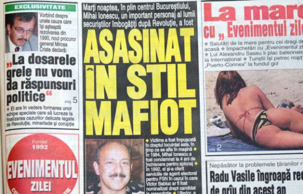 Un asasinat comis în anul 1998, rămas, până astăzi, cu autor necunoscut, a fost desluşit de poliţiştii de la Serviciul Omoruri. Principalul suspect care l-ar fi executat cu două focuri de armă pe Mihai Ionescu, la comanda mafiei italiene, este Alexandru Găină, fiul unui fost ofiţer al serviciului secret al ministerului de interne, celebra „Doi şi-un sfert”. În anul 1998, „Evenimentul zilei” lansa aceeaşi ipoteză:asasinat în stil mafiot. Victima a candidat la funcţia de senator şi, la vremea respectivă s-a vehiculat ipoteza că Ionescu ar fi fost implicat în scandalul „Ţigareta”.