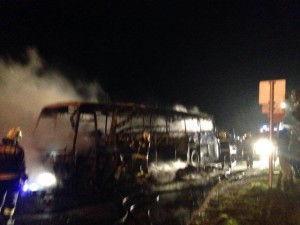 ”Pe drum, în jumătatea din spate a autocarului era foarte cald iar în partea din fața oamenii erau nevoiți să stea îmbrăcați ca afară. Până la urmă au cerut șoferului să ridice temperatura și imediat am simțit că mașina s-a umplut de fum. Șoferul a oprit într-o parcare. Am coborât cu toții. Unul dintre pasageri a vrut să-și scoată bagajul din cală și când a deschis ușa a observat că totul era cuprins de flăcări. Ne-am îndepărtat cu toții de locul incendiului și la foarte scurt timp întregul autocar a luat foc”, a explicat unul dintre pasageri.