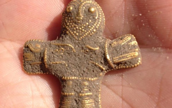 Intr-o vineri, Dennis Fabricius Holm a plecat mai repede de la birou si a decis sa iasa cu detectorul sau de metale pe un camp de langa orasul Aunslev. Mare i-a fost mirarea omului cand aparatul sau l-a ghidat catre un crucifix din aur, vechi de mai bine de 1.000 de ani. Omul a pus o fotografie cu descoperirea pe pagina sa de Facebook, iar prietenii virtuali l-au indemnat sa mearga la un muzeograf.