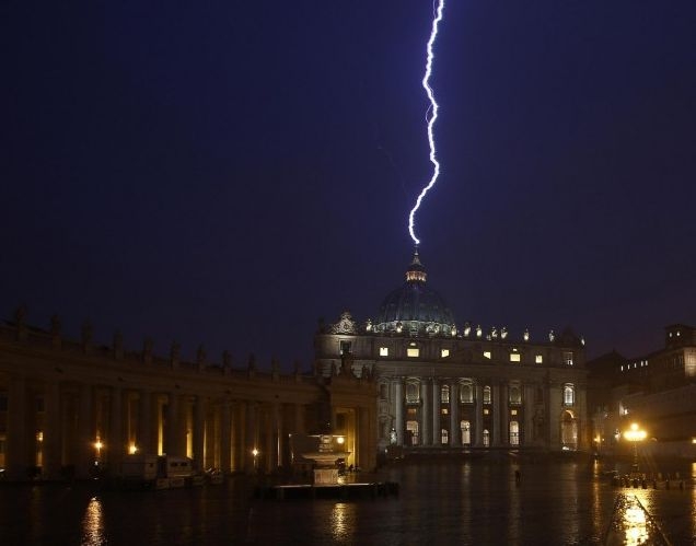 descărcareUn fulger a lovit Bazilica Sfantul Petru de la Vatican, la cateva ore dupa ce Papa Benedict al XVI-lea si-a anuntat demisia incepand cu 28 februarie. Papa Benedict al XVI-lea sustine ca nu mai are „fortele” necesare pentru a conduce Biserica din cauza varstei sale.