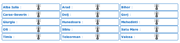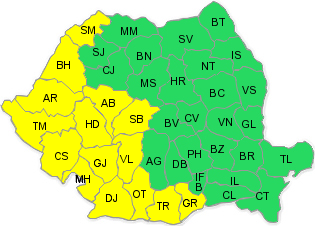 Judeţele vizate de atenţionarea Cod Galben sunt Satu Mare, Bihor, Arad, Timiş, Hunedoara, Alba, Sibiu, Caraş-Severin, Gorj, Vâlcea, Mehedinţi, Dolj, Olt, Giurgiu şi Teleorman.