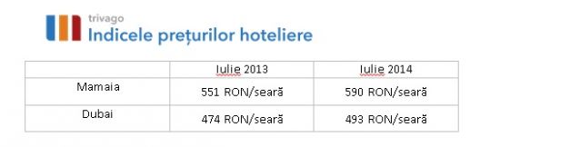 Comparativ cu iulie 2013, situaţia se menţine deoarece Mamaia a fost de asemenea mai scumpă decât Dubai. Alte destinaţii populare precum Miami (462 RON/seară), Hong Kong (537 RON/seară), Melbourne (537 RON/seară) şi Oslo (568 RON/seară) se află în aceeaşi categorie, ce oferă preţuri de cazare mai scăzute decât cea mai scumpă destinaţie din România din luna iulie.