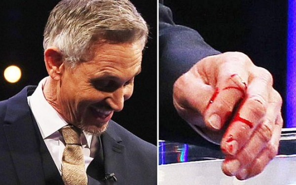 Gary Lineker, fost atacant al naţionalei de fotbal a Angliei şi cel mai bun marcator al acesteia de la Mondiale, în prezent comentator sportiv la BBC, a fost protagonistul incidentului. În vreme ce decerna premiul pentru Personalitatea Sportivă a Anului, fostul fotbalist şi-a tăiat mâna în trofeu şi a început să sângereze în direct.