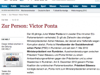 Publicatia “Die Welt” a realizat un interviu cu Victor Ponta dupa ce USL a castigat alegerile din 9 decembrie. Publicatia constata ca Premierul s-a confruntat cu mari probleme in Europa dupa ce a incercat sa-l demita in aceasta vara pe Presedintele Traian Basescu.