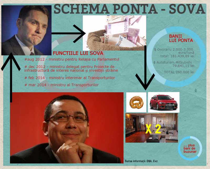 Ocupați cu lovitura de stat, care n-a mai avut loc datorită vigilenței majorității parlamentare, românii au uitat să se uite cum domnul Ponta a fost plătit de domnul Șova cam pe șest și cam cu mulți bani – mulți și pentru cine a dat și pentru cine a luat, fie numele hoților blestemat. Cel puțin așa rezultă din comunicatul DNA (plus completare) și din procesul verbal prin care același DNA l-a informat pe Victor Ponta că a cam îmbulinat-o.