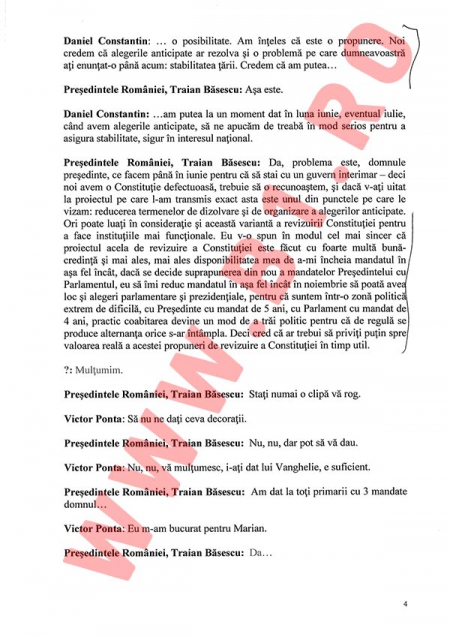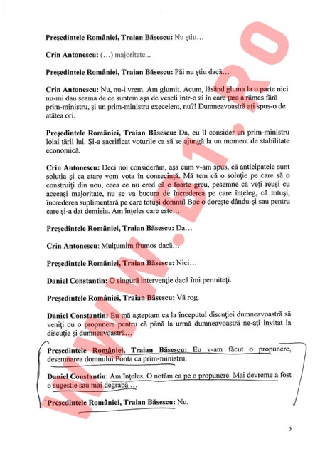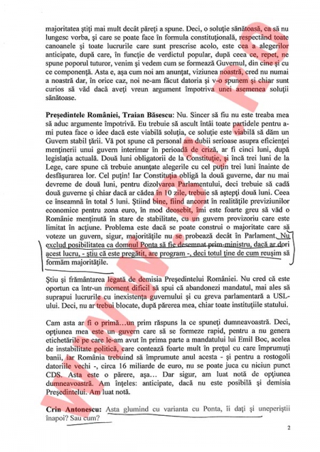 „Este foarte adevarata, am citit-o. Si daca ati citit-o si dumneavoastra ati vazut foarte clar. Domnul Basescu sper si solicit sa puna la dispozitie toate inregistrarile, nu doar intalnirea cu noi, in primul rand sa puna inregistrarea, in al doilea rand sa dea si inregistrarile de la celelalte partide”, a mai spus Ponta.