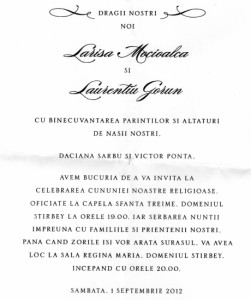 Cununia religioasă va fi oficiată la Capela Sfânta Treime, situată pe domeniul Ştirbey, iar petrecerea va avea loc la restaurantul Regina Maria, aflat pe acelaşi domeniu.