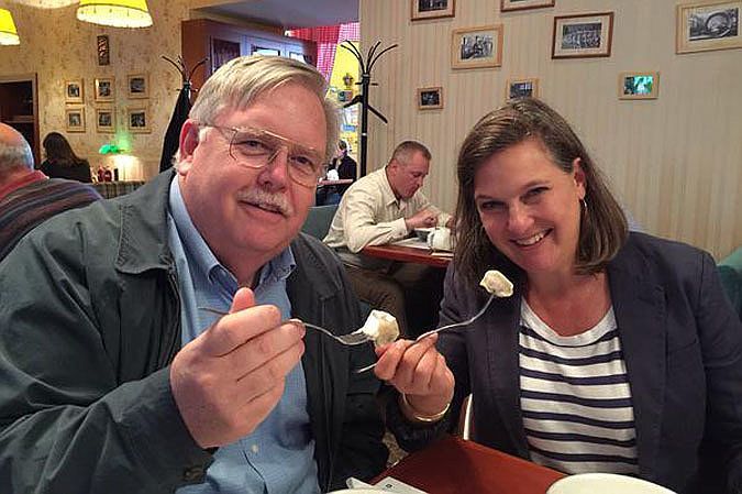 Un detaliu inedit din referințele culinare ale înaltului diplomat american a fost dezvăluit printr-o notă publicată pe pagina de Twitter a Ambasadei SUA, potrivit căreia Nuland și ambasadorul americamn la Moscova John Tefft au gustat unul dintre felurile de mâncare din Rusia, numit „pelmeni” (tip de ravioli cu bile mici de carne împachetate în aluat), servit cu „Smetana” (cremă de lapte degresat).