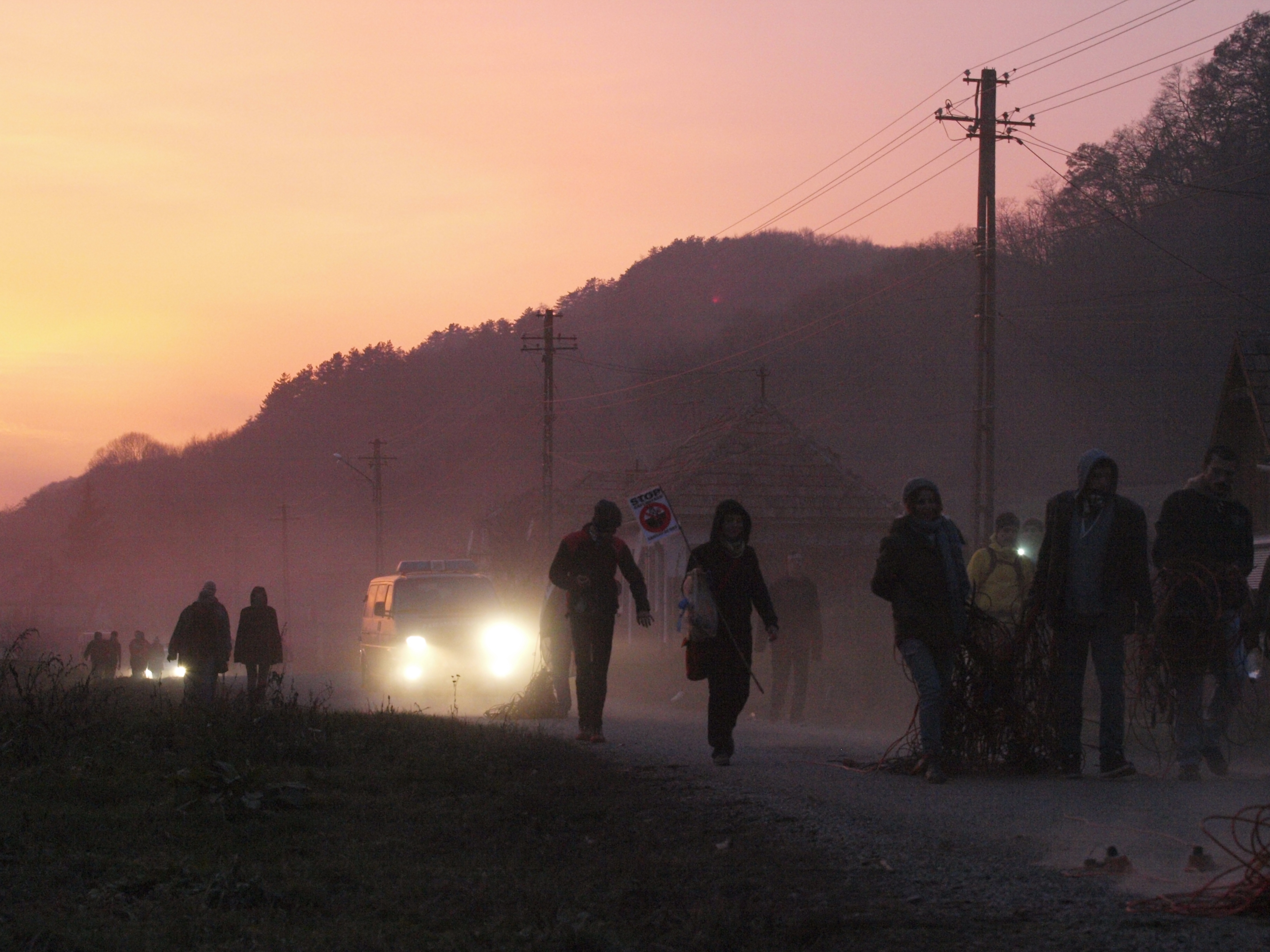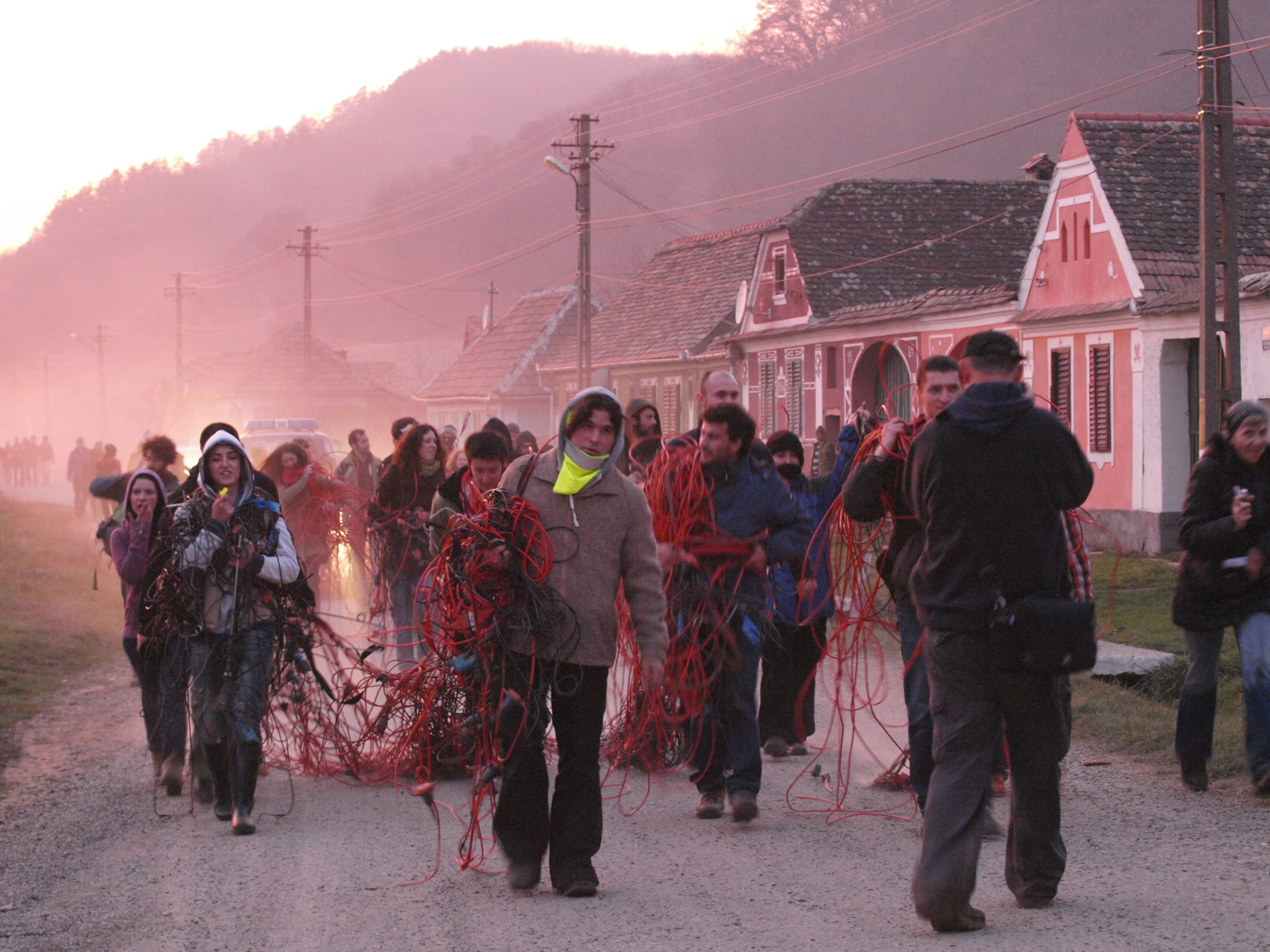 Aprox. la ora 17: 20-30 de voluntari, ajutati de localnici (multi copii), au inceput o actiune de “decablare” a zonei Alma Vii, strangand sute, daca nu mii de metri de cabluri seismice de pe dealuri – o actiune de o importanta majora – inclusiv simbolica. Imaginea grupului de protestatari ce se intoarce, pe inserate, in sat, tragand in urma lor “prada de razboi” si trecand impasibili pe langa echipajele de Jandarmi si Politie care-i lasa, neputinciosi, sa treaca – este imaginea unui mars de triumf al opozantilor gazelor de sist, asupra firmei s.c. PROSPECTIUNI S.A. Cine nu intelege acest mesaj este ori inconstient ori total rupt de realitate – precum personajul comic al zilei, dl. Daianu. (Vezi jos)