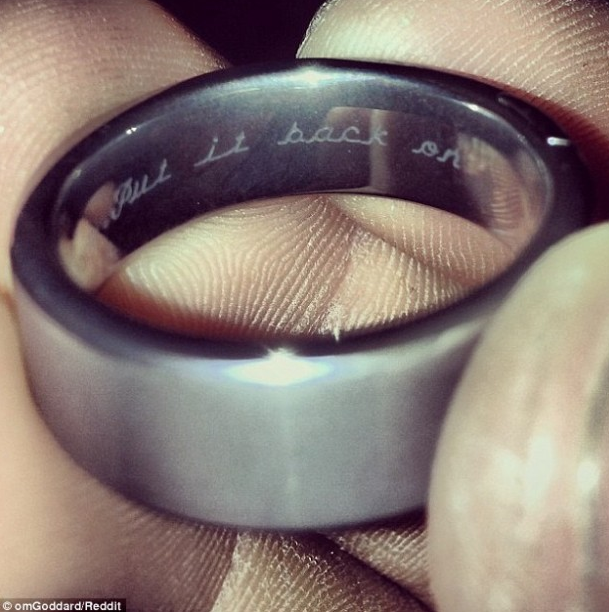 Mesajul inscriptionat pe verigheta unui barbat din Michigan a cucerit internetul. Un prieten al cuplului a pus imaginea cu textul pe un site.