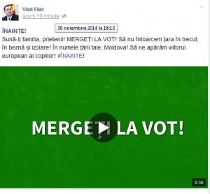 Liderul Partidul Democrat Liberal din Moldova, Vlad Filat, face un apel pe facebook înainte cu două ore de închiderea urnelor: