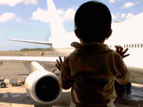 Roxana B. are 32 de ani. Însoţită de fiul ei, M. de 5 ani, aşteaptă îmbarcarea în avionul pentru Roma. Copilul este vizibil emoţionat şi încântat de primul lui zbor cu avionul. Îmbrăcat în costum, cu cravată, blonduţ cu ochii verzi, stă cu două jucării: un celular şi un pistol.