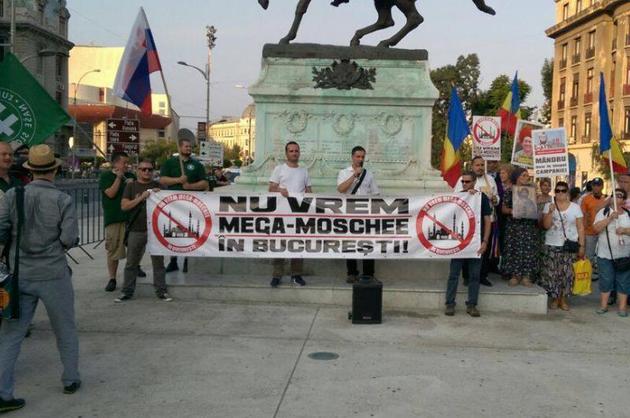 Noua Dreaptă a organizat recent un protest împotriva acestui proiect, unde o mulţime de membri de partid au protestat. „România nu e o provincie turcească”, au strigat aceştia. Ei consideră că moscheea nu este destinată populaţiei mici de musulmani din capitală, ci imigranţilor ilegali care au de gând să apară în anii următori.